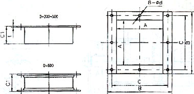 注:1、螺旋機(jī)輸送長(zhǎng)度及尺寸L均見表二、表三。 2、圖n×500為蓋板卡子尺寸,n值視螺旋機(jī)長(zhǎng)度而定。 3、圖中尺寸p為進(jìn)出料口中心線。